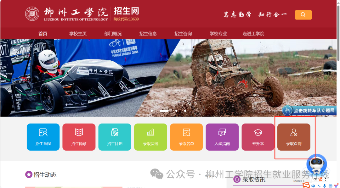 2.进入页面后,选择录取查询。